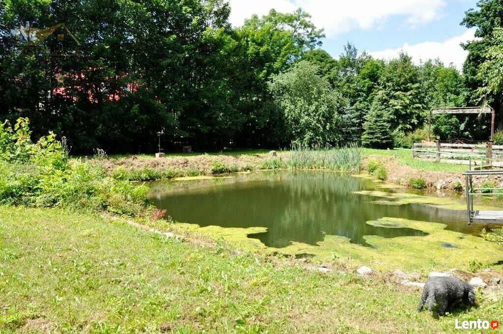 Na terenie posesji mieści się wędzarnia, murowany grill, staw.