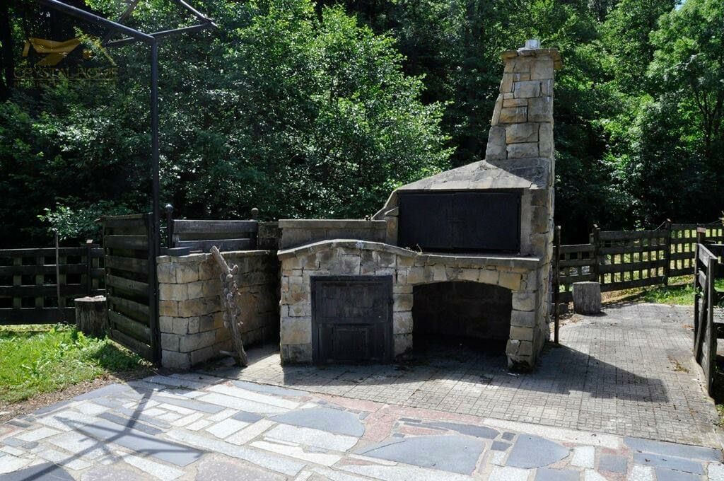 Na terenie posesji mieści się wędzarnia, murowany grill, staw.